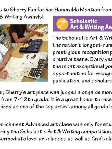 Students in grades 6-12 will work on creating original pieces to submit to the Scholastic Art & Writing Awards. Winning these prestigious national awards can significantly enhance a student's college application, whether they are aiming for art schools or Ivy League institutions. These awards demonstrate a student's dedication and appreciation for the arts.
